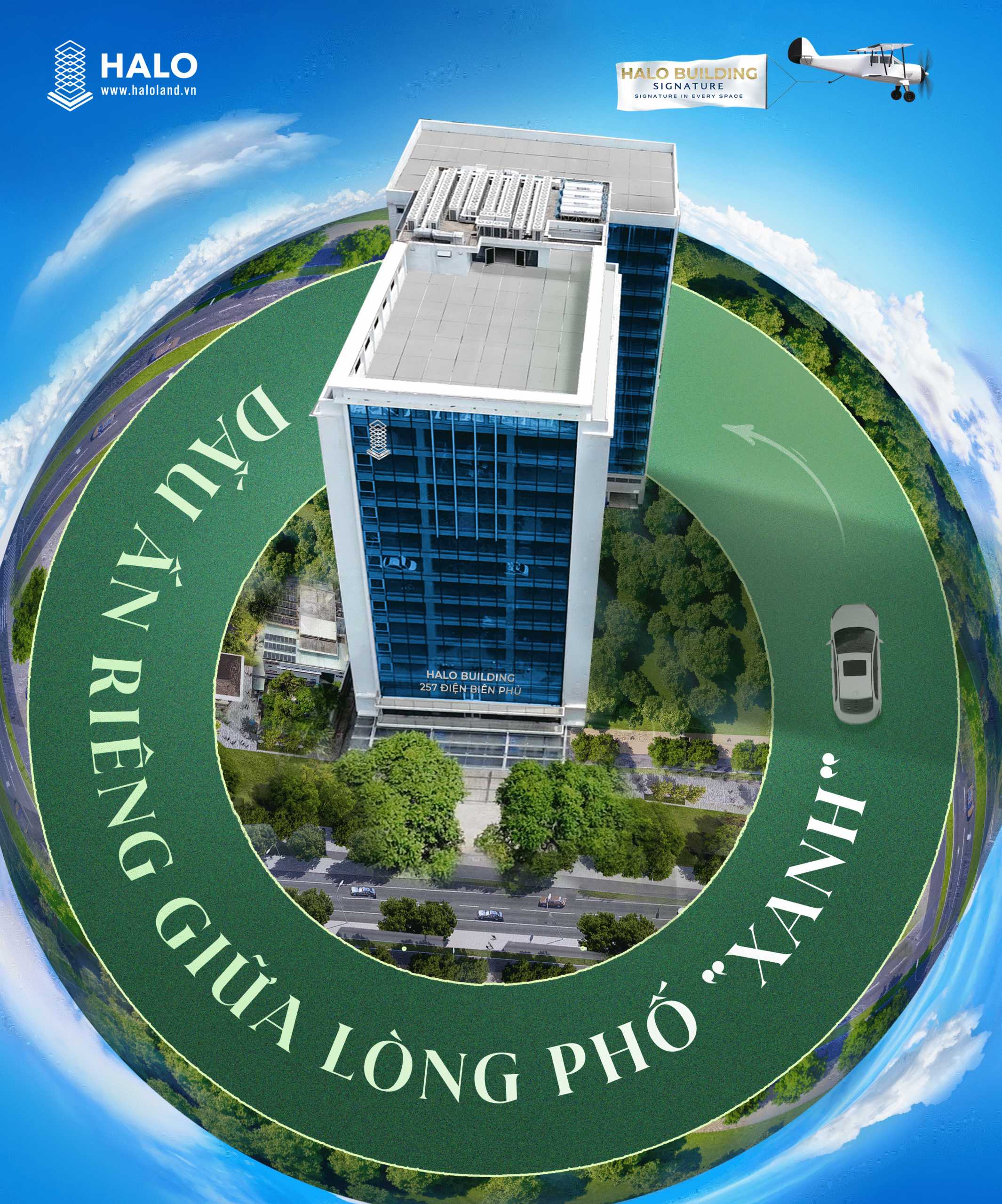 Tọa lạc tại khu vực trung tâm sầm uất bật nhất của Thành phố – nơi được mệnh danh là “lá phổi xanh” với chiều sâu văn hóa và mật độ cây xanh đặc trưng, tại đây những mảng xanh len lỏi khắp từng con đường, góc phố, góp phần cải thiện chất lượng sống và mang lại nguồn cảm hứng tích cực trong công việc. Chính năng lượng ấy đã trở thành động lực để HALOLAND kiến tạo nên HALO BUILDING SIGNATURE – Dấu ấn riêng giữa lòng phố “xanh” để tiếp nối chuỗi không gian làm việc đẳng cấp và giàu cảm hứng. Với vị trí chiến lược tại 257 ĐIỆN BIÊN PHỦ, một trong những khu vực có nhiều mảng xanh đô thị nhất Thành phố, HALO BUILDING SIGNATURE mang đến sự cân bằng hoàn hảo giữa tiện nghi đô thị và không gian thiên nhiên giúp doanh nghiệp giữ vững nguồn năng lượng tích cực và tinh thần sáng tạo luôn được nuôi dưỡng trong từng ngày làm việc.